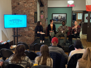 Closing event of the residency at Centre culturel Aberdeen. On the photo, from left to right: Éloïse LeBlanc, Mica, Rotchild Choisy, Marie-Ségolène Brault. Photo: Marc Xavier Leblanc.